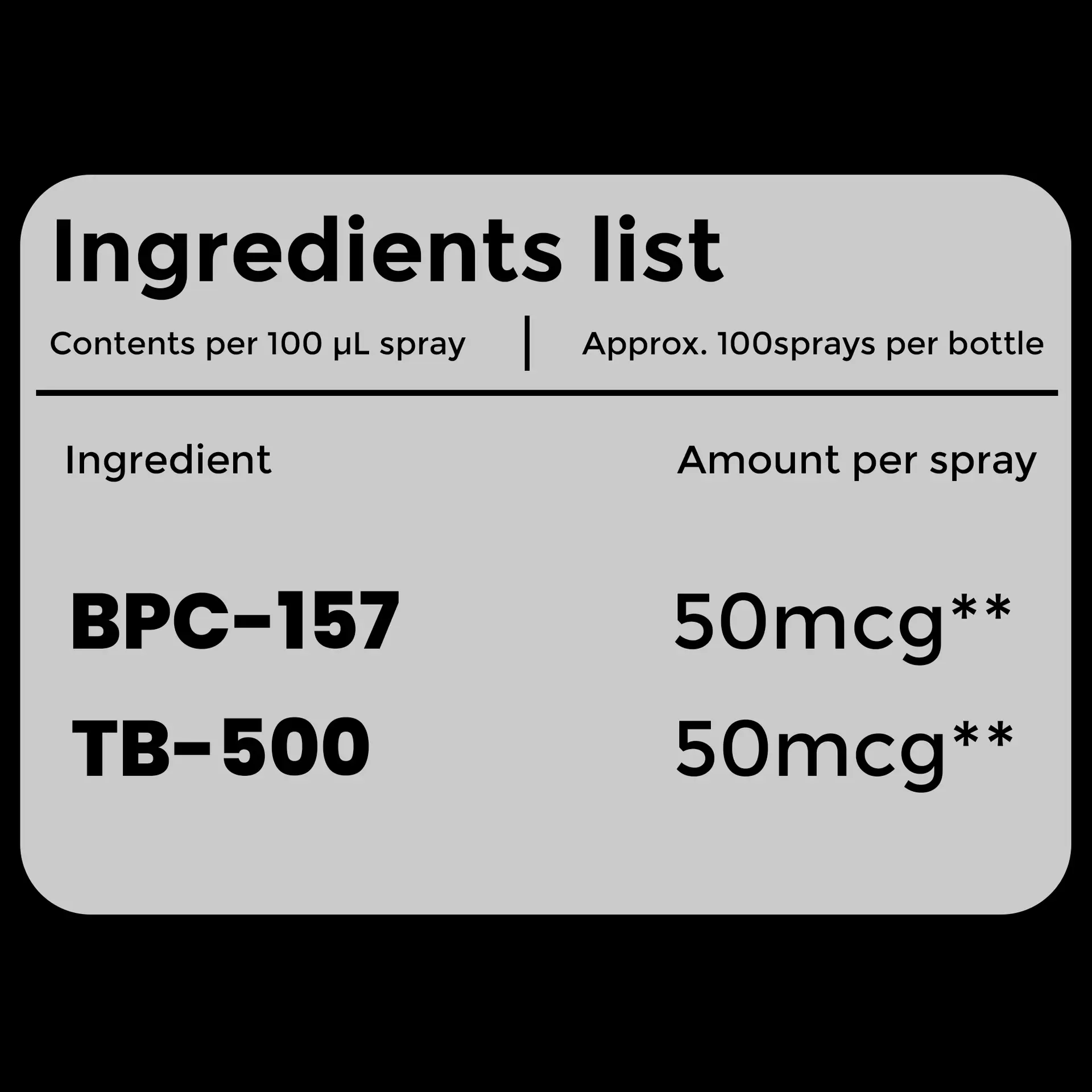 Q1: How many doses in one vial? A: Approximately 100 sprays with 10ml solution in the 15ml spray bottle (concentration according to your research protocol).